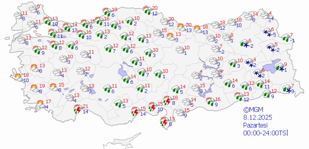 • Doğu Anadolu’nun batısının yükseklerinde karla karışık yağmur,