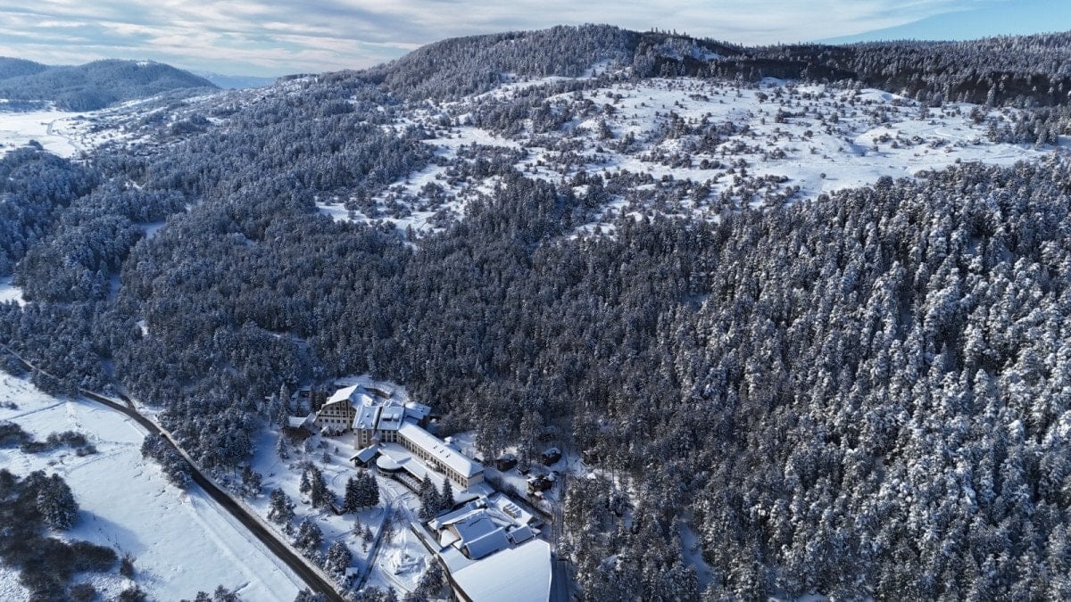 Abant’ı çevreleyen çam ormanları karla kaplanırken, ortaya kartpostallık görüntüler çıktı. Tatil için bölgeye gelen ziyaretçiler, soğuk havaya aldırış etmeden göl çevresinde yürüyüş yaptı. Beyaz örtüyle kaplanan Abant Gölü Milli Parkı’nın eşsiz manzarası drone ile görüntülendi.