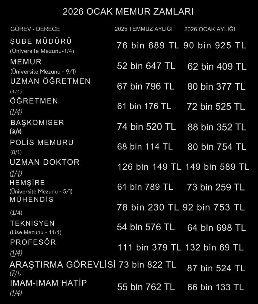 Türkiye İstatistik Kurumu (TÜİK) tarafından açıklanan aralık ayı enflasyon verileriyle birlikte öğretmen maaşı dahil olmak üzere kamu çalışanlarının 2026 Ocak zamlı maaşları netleşti. Ancak açıklanan zam oranı öğretmenleri memnun etmedi.