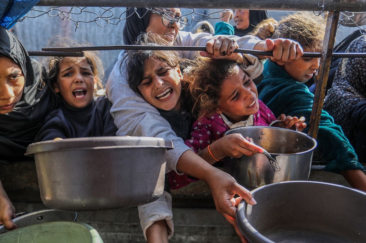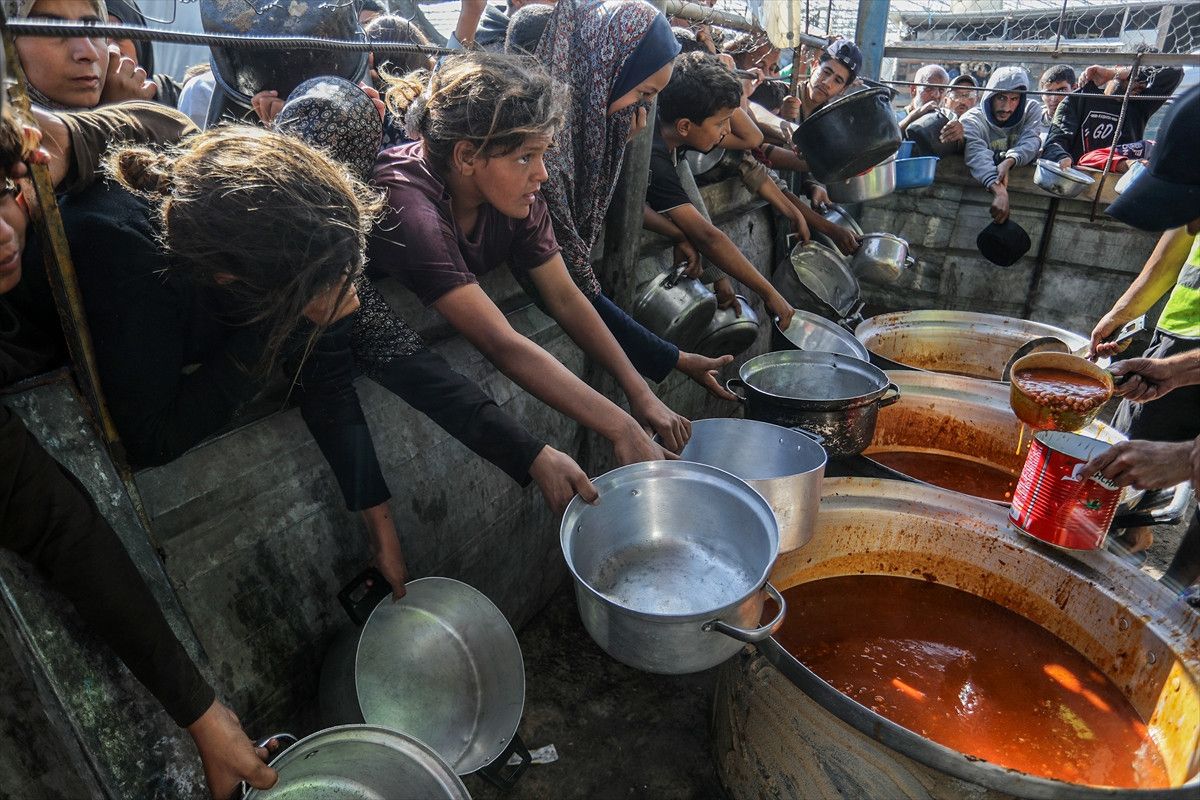 Gazze Şeridi’nin güneyindeki Han Yunus kentinin Mevasi bölgesinde faaliyet gösteren bir aşevinde, yerinden edilmiş Filistinlilere sıcak yemek dağıtımı yapıldı.